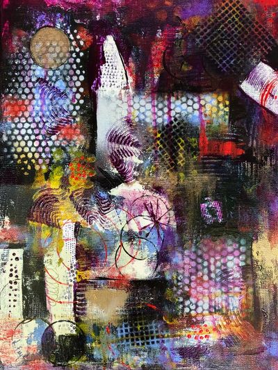 My paintings are rooted in my spirituality and faith. They are intuited messages of love and hope which arrive at the singular meaning that God is always with us and loves us. I have always prayed for people, and my paintings allow me to express that visually. My range of abstract and semi-abstract styles and choices in media result from the intuitive